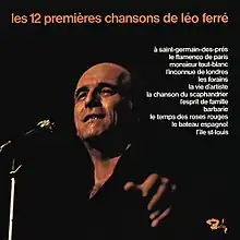 Les Douze Premières Chansons de Léo Ferré (English: The Twelve First Songs of Léo Ferré) is an album by Léo Ferré, released in 1969 by Barclay Records. The singer records once again the songs he taped in 1950 on behalf of the label Le Chant du Monde, for 78s releases. Back then he had accompanied himself on the piano and technical conditions weren't top-notch. For this release Ferré is backed by a studio orchestra and delivers the songs with plain charismatic vocal maturity.