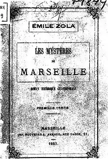 The novel Les Mystères de Marseille by Émile Zola appeared as a serialized story in Le Messager de Provence in 1867, while Zola was writing Thérèse Raquin. As a work of his youth, it was thus also a commissioned work on which Zola cut his teeth. In it, he himself saw the amount of will and work that he had to expend to elevate himself to the literary effort of the Rougon – Macquart novels.