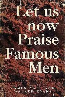 Let Us Now Praise Famous Men is a book with text by American writer James Agee and photographs by American photographer Walker Evans, first published in 1941 in the United States. The work documents the lives of impoverished tenant farmers during the Great Depression. Although it is in keeping with Evans's work with the Farm Security Administration, the project was initiated not by the FSA, but by Fortune magazine. The title derives from a passage in the Wisdom of Sirach (44:1) that begins, "Let us now praise famous men, and our fathers that begat us."