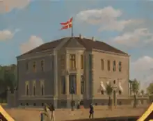 In 1859 the Navy decommissioned their last operations at Gammelholm, and the area was designated for residential redevelopment.[1] The City's initial plan was to reserve it for large villas in an attempt to keep wealthy tax-payers within the municipal borders since they were increasingly settling in Frederiksberg or in the northern suburbs. The grocer and bankier Martin Levin bought a lot on the waterfront and charged the architect Johan Daniel Herholdt with designing a house which was built in 1865–66.[2] Due to the difficult economic times that followed from Denmark's involvement in the Second Schleswig War, it was the only detached single-family house-with-garden that was built in the area. Gammelholm was instead built over with apartment buildings according to a master plan created by Ferdinand Meldahl. An expansion of the house incorporated it into the block structure of the new plan.[3]