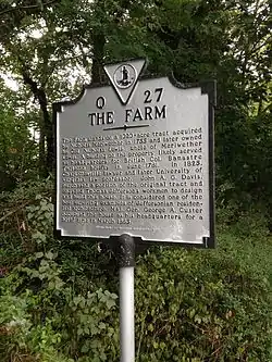 The historic home listed as Lewis Farm, also known as The Farm and John A. G. Davis Farm, is located at Charlottesville, Virginia. It was built in 1826, and is a two-story brick dwelling with a low hipped roof and two large chimneys. On the front facade is a Tuscan order portico with a terrace above. The house was built by individuals who worked with Thomas Jefferson on building the University of Virginia.[3][4] Its builder, John A. G. Davis, was law professor at the University of Virginia and was shot and killed outside Pavilion X by a student in 1840. During the American Civil War, Brigadier General George Armstrong Custer set up temporary headquarters at the house where he remained for three days.[5]