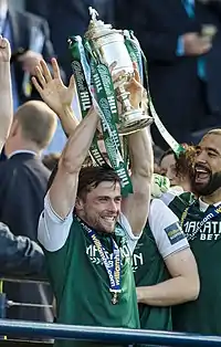 ![]() Stevenson lifting the Scottish Cup for Hibernian in 2016 | |||