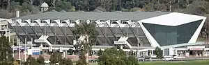 Known originally as the Swimming and Diving Stadium, it was built as an indoor aquatic centre for diving, swimming, water polo, and the swimming part of the modern pentathlon events for the 1956 Summer Olympics.[2][3] It was the first fully indoor Olympic swimming venue in an Olympic Games and is the only major stadium structure from the 1956 Olympic Games with the facade intact.[2] It is listed on the Victorian Heritage Register.[4] The design of this building was the winner of one of three international competitions held in 1952 to provide stadia for the 1956 Olympic Games.[2] Architects Kevin Borland, Peter McIntyre, John and Phyllis Murphy and their engineer Bill Irwin won the only one of these competitions to be consummated.[2] Construction by McDougall & Ireland, one of Melbourne's then-largest construction companies, began in October 1954 and was completed in 1956, just prior to the commencement of the Melbourne Olympic Games.[2]
