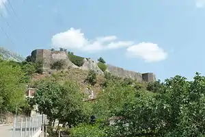 Libohovë Castle (Albanian: Kalaja e Libohovës) is a castle in Libohovë, Gjirokastër county, southern Albania. It is possible that Libohovë Castle was built on the ruins of another castle or other structure. It was built between 1741 and 1822 by Ali Pasha of Ioannina. The castle was built for his sister Shanish as a Wedding Gift. She lived in the castle until she eventually died and her grave is near the city of Libohova. Today the Castles inner area/Feudal residence is empty but the walls are still standing tall. [1]