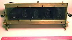 The principle of edge-lighting was discovered early and used for commercial signs. U.S. Patent 1,139,723 for an "Electric edge lit sign" was filed on July 31, 1914, and granted in 1915.[1] Other similar patents (1,707,965, 1,741,748, 2,082,724, 2,623,313) for illuminated signs were filed 1928-1948.[1] But the need for digit read-out arose with electronic computers in the 1950s with many independent inventions, both in edge-lighting, nixie tubes and other technologies.