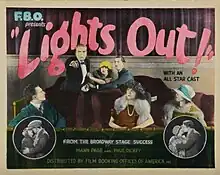 Lights Out is a 1923 American silent crime drama film directed by Alfred Santell and starring Ruth Stonehouse, Walter McGrail and Theodore von Eltz.[1] It is based on the 1922 play Lights Out by Paul Dickey and Mann Page, later adapted into the 1938 film Crashing Hollywood.[2] The remake was more light-hearted than the melodramatic tone of the original.