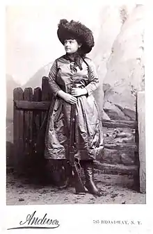 Lillian Frances Smith (August 4, 1871[nb 1] – February 3, 1930)[4] was an American trick shooter and trick rider who joined Buffalo Bill's Wild West in 1886, at the age of fourteen.[5] She was billed as "the champion California huntress,"[6] and was a direct rival to Annie Oakley in the show.[7][8]