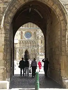 Between 1307 and 1311 the central tower was raised to its present height. Then about 1370–1400, the western towers were heightened. All three had spires until 1549, when the one on the central tower blew down.