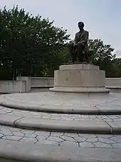 The primary piece of public art in the park is Lincoln the Mystic, a statue by James Earle Fraser commissioned in 1929[28] by the Lincoln Association of Jersey City.[29] The sculpture was dedicated on June 14, 1930.[30] 4,000 people attended the unveiling and the crowd was addressed by New Jersey Governor Morgan F. Larson.[31]
