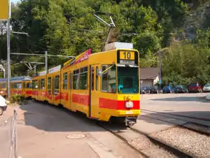 The line 10 is Basel's only direct tram line between the train station SBB and the main entrance to the Zoo Basel. It also has the almost-unique distinction of crossing an international border, as it passes through French territory for two miles and calls at the commune of Leymen in Alsace.[1] There are just four other known international tram lines: Saarbrücken's Saarbahn from Germany to France (Sarreguemines), Strasbourg's D line to Kehl (Germany) and Basel's line 8 from Switzerland to Germany (Weil am Rhein). In 2017, the tram line 3 became the third international tram line in Basel when its terminus at Burgfelden Grenze was extended to Saint Louis station (Gare St. Louis) in France . The fifth one is the line 17 from Geneva (Switzerland) to Annemasse (France).