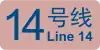 Line 14 of the Beijing Subway (Chinese: 北京地铁14号线; pinyin: běijīng dìtiě shísì hàoxiàn) is a rapid transit rail line in the south and east of Beijing. The line is operated by the Beijing MTR Corporation Limited.[2] Line 14's color is silver pink.