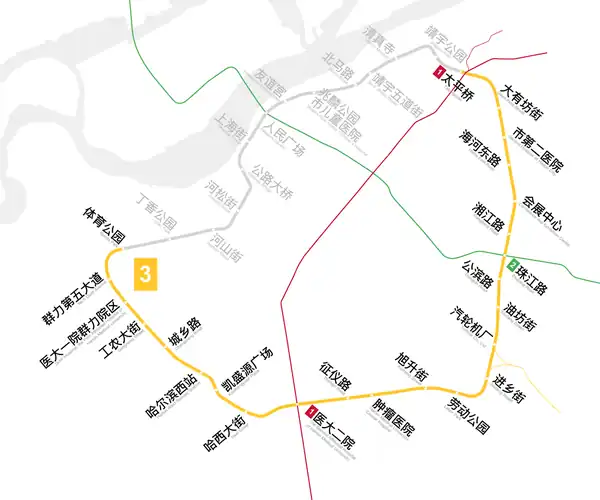 - 1 2 3 "哈尔滨地铁3号线一期工程通车试运营 迎来"换乘"时代". 2017-01-26. Archived from the original on 2021-11-25. Retrieved 2019-11-07.