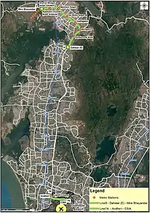- ↑ "Metro to extend to Mira-Bhayander and airport: Chief Minister Devendra Fadnavis". The Indian Express. 30 March 2017. Retrieved 30 March 2017.