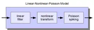 The linear-nonlinear-Poisson (LNP) cascade model is a simplified functional model of neural spike responses.[1][2][3] It has been successfully used to describe the response characteristics of neurons in early sensory pathways, especially the visual system. The LNP model is generally implicit when using reverse correlation or the spike-triggered average to characterize neural responses with white-noise stimuli.