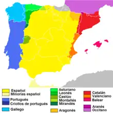 Color-coded map of the Iberian Romance languages