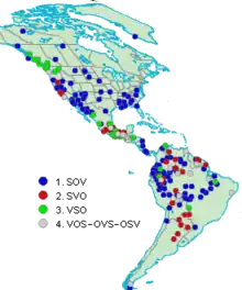 - objects preceding verbs, such as SOV and OVS word orders (except in a few Arawakan languages)