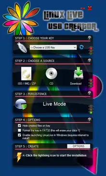 LinuxLive USB Creator is a free Microsoft Windows program that creates Live USB systems from installed images of supported Linux distributions.[2][3] Due to time constraints the sole developer, Thibaut, halted support and updates for LinuxLive December 22nd, 2015.