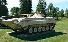 - Ob'yekt 769 – An experimental IFV based on an Ob'yekt 768 chassis and built in 1972. It was fitted with a new turret armed with a 30 mm 2A42 autocannon and a 7.62 mm PKT coaxial machine gun. A second PKT was installed in a small rotatable turret on top of the hull. It was also armed with a pintle-mounted ATGM launcher capable of firing SACLOS guided 9M113 "Konkurs" (AT-5 Spandrel) and 9M113M "Konkurs-M" (AT-5B Spandrel) ATGMs. It carried 500 rounds for the main gun, 2000 rounds for the machine guns and four ATGMs. The track unit, with hydrodynamic grills, was used for swimming. It was fitted with a diesel engine developing 321 hp (239 kW), weighed 13.8 tonnes and had a crew of three (plus 7 troopers). The turret developed for the Ob'yekt 769 was later slightly improved and installed on the BMP-2. The prototype is preserved at the Kubinka Tank Museum.[2]