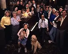 Kathy Cotton (also Beale, Mitchell and Sullivan),[27] played by Gillian Taylforth between 1985 and 2000, and then from 2015 onwards, is the mother of Ian Beale (Adam Woodyatt). Though it was never used on screen, in 2010 the BBC website named the character as Kathy Sullivan due to a marriage after she left the show in 2000.[28] Kathy Beale is one of the serial's original characters, appearing in the first episode of EastEnders on 19 February 1985. One of the longest-running original characters, Kathy remains in a prominent role, covering issues such as rape and domestic violence until April 1998, when Taylforth quit. A year later, in 1999, Taylforth returned for a temporary stint to aid the departure of actor Ross Kemp who played her brother-in-law Grant Mitchell, and later in December 1999 for the wedding of her screen son Ian. She made her final appearance in January 2000. Despite various rumours of a possible return for Kathy in the press, this did not occur and the character was supposedly killed off-screen in a road accident in late February 2006 in a storyline to facilitate the return of her son Ben to his father Phil (Steve McFadden). In tribute to the character, the soap's café is named "Kathy's".[29] Kathy returned for the 30th anniversary episode in February 2015, when it was revealed that Kathy never died in a surprise showdown with her ex-husband, Phil.