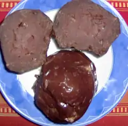 A pastry made from marzipan with almond, powdered sugar, rosewater, flour and egg. It is a traditional cookie usually baked for Christmas Day and is widely available in chocolate shops around Frankfurt.[4] |