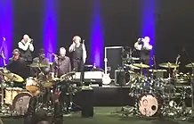 Rieflin was temporarily replaced again for an autumn 2017 tour by Chris Gibson.[27] For the band's 50th anniversary tour in 2019, it was announced that Rieflin would once more be temporarily replaced, this time by Theo Travis.[28] However, after a day of rehearsal, the band opted instead to do the 2019 tour as a seven-piece.[29] Rieflin's parts were divided among other band members, with Jakszyk and Collins adding keyboards to their on-stage rigs, and Levin once again using the synthesizer he used during the 1980s tours.[30] Rieflin died of cancer on March 23, 2020, reducing the line-up to a septet.[31]