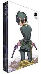 Kino's Journey —the Beautiful World— is an anime series based on the light novel series of the same name written by Keiichi Sigsawa and illustrated by Kohaku Kuroboshi. The series follows a traveler named Kino and her talking motorcycle, known as a Motorrad, named Hermes, as they explore countries with unique customs and people around a mysterious world, only spending three days at each location. Produced by A.C.G.T and Genco, and directed by Ryūtarō Nakamura, the 13-episode series aired weekly on the WOWOW satellite television network between April 8 and July 8, 2003.[1][2] It was also broadcast on the anime satellite television network Animax, which also aired the series on its networks in Southeast Asia, East Asia, and South Asia. The episodes were released to Region 2 DVD compilation volumes between June 18 and November 19, 2003.[3] Spanning six volumes, each volume contained two episodes except the first, which had three.[3] The series was re-released in two, three volume bundles on January 19, 2005 and February 16, 2005.[4] In addition to the main series, there is also a 12-minute-long prologue entitled "Episode 0: The Tower Country —Freelance—" which was released as an original video animation episode with the first animated film's DVD release on October 19, 2005.[3]
