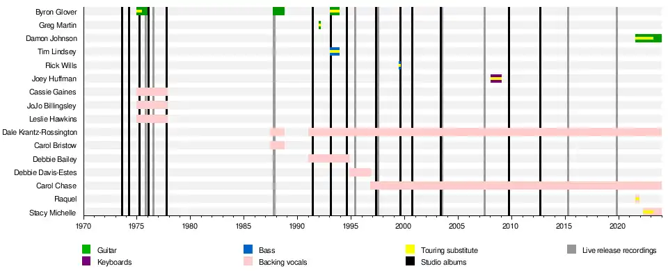 | Cassie Gaines | 1975–1977 (until her death)[74][15] | backing vocals |