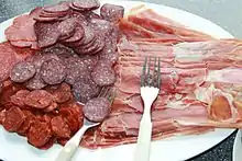 - Fenalår – a traditional cured meat made from salted and dried leg of lamb, often served with other preserved food at a Christmas buffet or at Norwegian Constitution Day.[36]