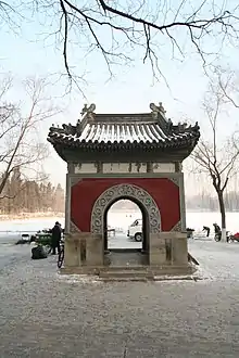 The gate of the Flora Temple on the eastern bank of the Weiming Lake