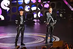 TVXQ's international concert tours often overlapped with their Japanese concert tours. The duo's Japanese tours have set numerous records: they were the first Korean music act to headline a five-Dome tour,[5] the first foreign music act to hold a concert in Japan's largest venue, the Nissan Stadium,[6] and the first and only foreign act to attract over 1 million people on a Japanese tour.[7] Their 2013 Time Tour was the largest, most-attended, and highest-grossing concert series ever held by a foreign music act in Japan at the time; it grossed US$93 million in concert tickets and attracted over 850,000 people.[8] The duo set new attendance and revenue records in 2017 with their Begin Again Tour, mobilizing over 1.28 million fans and grossing US$110 million in ticket sales, as well as becoming the first and only foreign act to play at the Nissan Stadium for three consecutive days.[9]