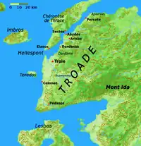 In 306 BC Antigonus I granted to Ilion an alliance in the Troad for support of the yearly Panathenaia festival for Athena Ilias. Renewed in 77 BC by the Roman quaestor. Coins minted until the late 1st century. The league is known entirely from inscriptions.[1] | ![]() |