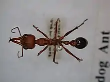 The subfamily Myrmicinae is the largest in Australia in terms of both number of genera and species, as well as the subfamily Formicinae, which is also one of the most common subfamily of ants to be encountered.[8][9] The subfamily Myrmeciinae consists of two genera which are only found in Australia, with the exception of a single species native to New Caledonia.[10] Only a single species of the subfamily Leptanillinae is known from Australia.[7]