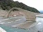 | 11 | Korakou Bridge destroyed in 1949 | Γεφυρα Κορακου | Span : 45 m (148 ft) | 62 m (203 ft) | Masonry 1 segmental arch | Footbridge Achelous River | 1540 | Pigés 39°17′53.7″N 21°25′02.3″E / 39.298250°N 21.417306°E | Epirus | [13] [14] [15] | |