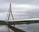 ![]() | 3 | Mary McAleese Boyne Valley Bridge | 170 m (560 ft) | 352 m (1,155 ft) | Cable-stayed Composite steel/concrete deck, concrete pylon 170+42 | 2003 | Drogheda 53°43′07.1″N 6°23′48.8″W / 53.718639°N 6.396889°W | Louth Meath | [S 11] [18] | ||