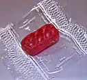 This gummy has a strawberry pink top and white base, it is covered with crystallized sugar to give it more flavor. Its flavor usually is strawberry cream, although it also has a chocolate covered variant.[18] |