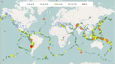 For exact dates and live earthquakes please visit USGS's Global Earthquake Search Page and Real-time Earthquake Map or EMSC's Real-time Seismicity.