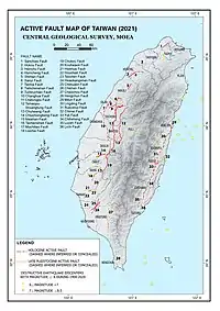 - ↑ Yu, S.B.; Chen, H.Y.; Kuo, L.C. (1997). "Velocity field of GPS stations in the Taiwan area". Tectonophysics. 274 (1–3): 41–59. Bibcode:1997Tectp.274...41Y. doi:10.1016/S0040-1951(96)00297-1.