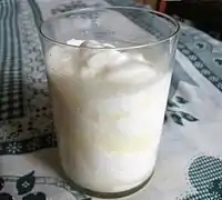 Middle East | A cold yogurt beverage mixed with salt.[15] In addition to Turkey, where it is considered a national drink, ayran is found in Iran (there called doogh), Afghanistan, Armenia (here called tan), Azerbaijan, the Balkans, Kazakhstan, Kyrgyzstan, Lebanon, Syria and across the Caucasus.[16] Its primary ingredients are water and yogurt. |