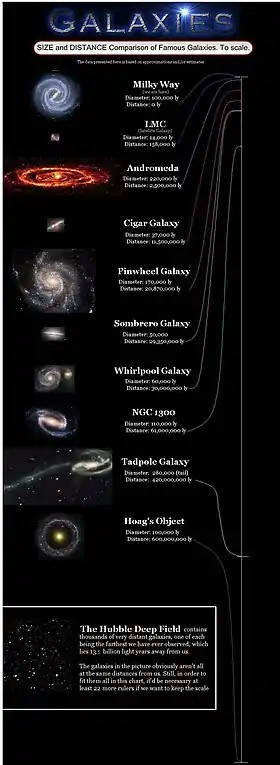| Small Magellanic Cloud (NGC 292) | 2.7 | 200 kly (61 kpc) | Tucana | Visible only from the southern hemisphere.[12][15] |