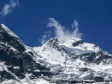 Goumukh, terminus of the Gangotri glacier. The Bhagirathi peaks rise in the background.