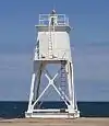 - ↑ Replaced with light on metal tower. Lighthouse is privately owned.