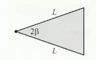 | An isosceles triangle of mass M, vertex angle 2β and common-side length L (axis through tip, perpendicular to plane) | ![]() |