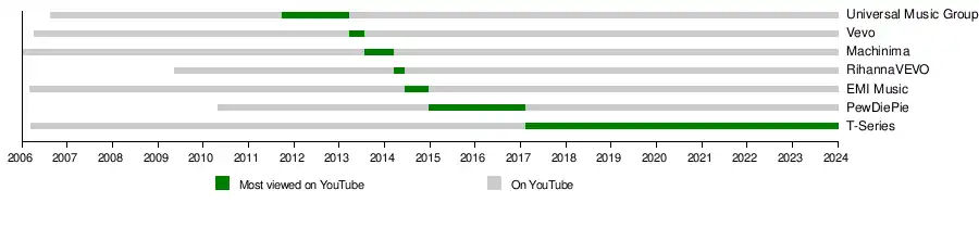 The following table lists the channels that became YouTube's most-viewed channel at different points in time.