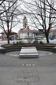 - ↑ "Munich to Continue Ban of Stumbling Stone Holocaust Memorials". Newsweek. 2015-07-29. Retrieved 2016-12-16.