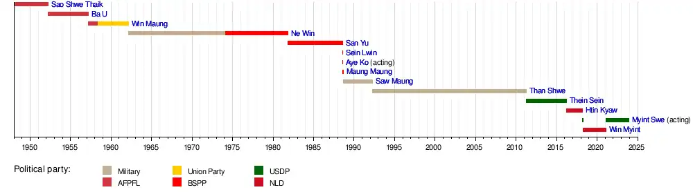 2 March 1962 | 2 March 1974 | 12 years | Military / Burma Socialist Programme Party |