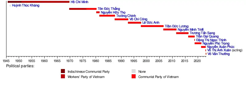 2 September 1945 | 2 September 1969† | 24 years | Indochinese Communist Party (until February 1951) Worker's Party of Vietnam (from February 1951) |