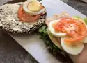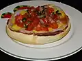 Israel | Pressed, toasted bagel filled with vegetables and cheese and grilled on a sandwich toaster or panini press. |