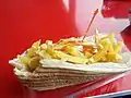 | Tapioca de presunto e queijo | Brazil | A popular street food and snack in Brazil. A sandwich made out of tapioca with ham and cheese pressed and melted on a sandwich grill.[38] | |