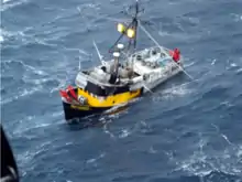 | Hunter | After suffering heavy icing, the 58-foot (17.7 m) fishing vessel capsized and sank in 10 minutes in the Shelikof Strait 2 nautical miles (3.7 km; 2.3 mi) east of Cape Igvak (57°26′N 156°01′W / 57.433°N 156.017°W) on the south coast of the Alaska Peninsula in Alaska. Wearing survival suits, her crew of four abandoned ship in a life raft and was rescued by a United States Coast Guard Sikorsky HH-60 Jayhawk helicopter.[1] |