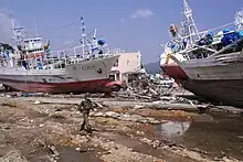 - ↑ "Japan earthquake: 30 pictures of boats and ships swept ashore by the tsunami – Image 30 of 30". London: Telegraph Group. 18 March 2011. Retrieved 28 March 2011.